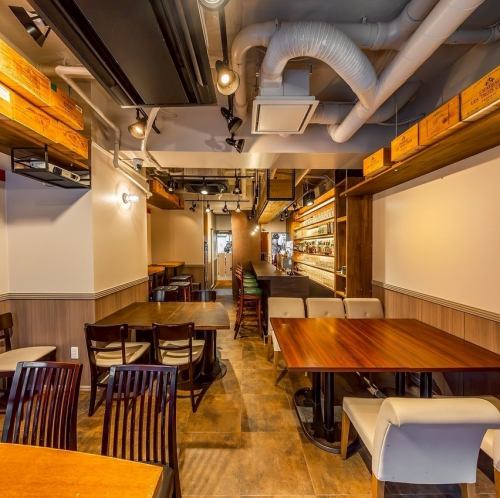 [High chair seating: 2 tables for 2 people each] The spacious and relaxing atmosphere, with its warm wooden interior, is casual yet sophisticated.Furthermore, the intimate seating arrangement makes it ideal for adult dates or meals with close friends.Enjoy a wonderful time while savoring our delicious drinks and food.